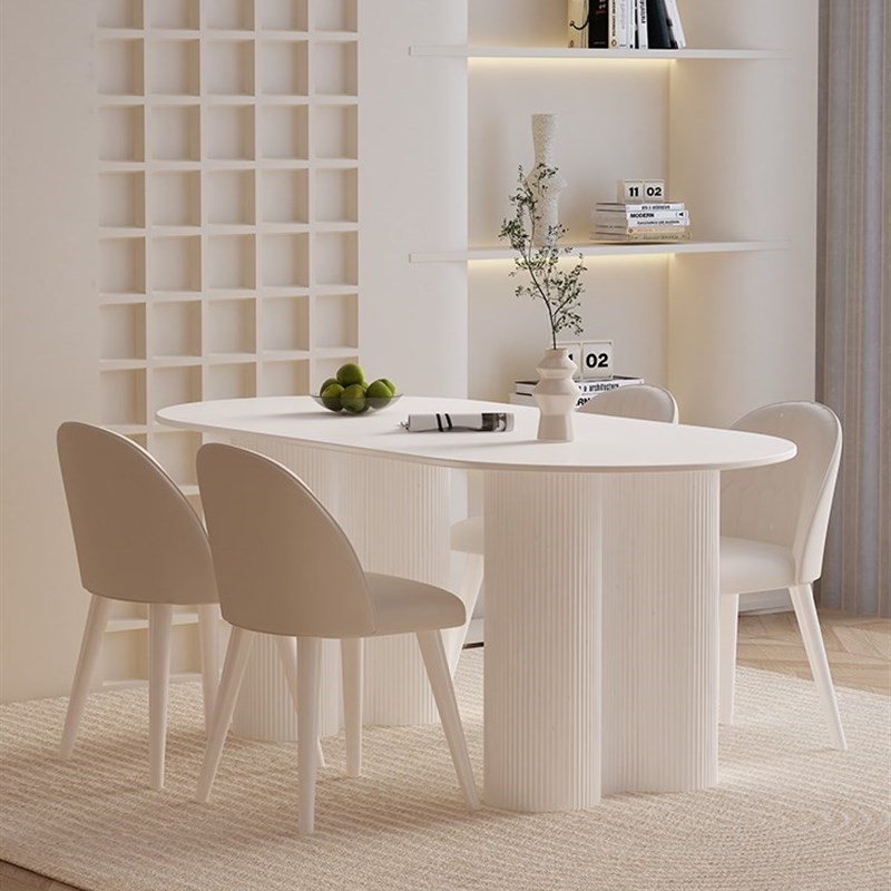 轻奢岩板餐桌家用小户型现代简约极简网红奶油风6人餐桌椅椭圆形