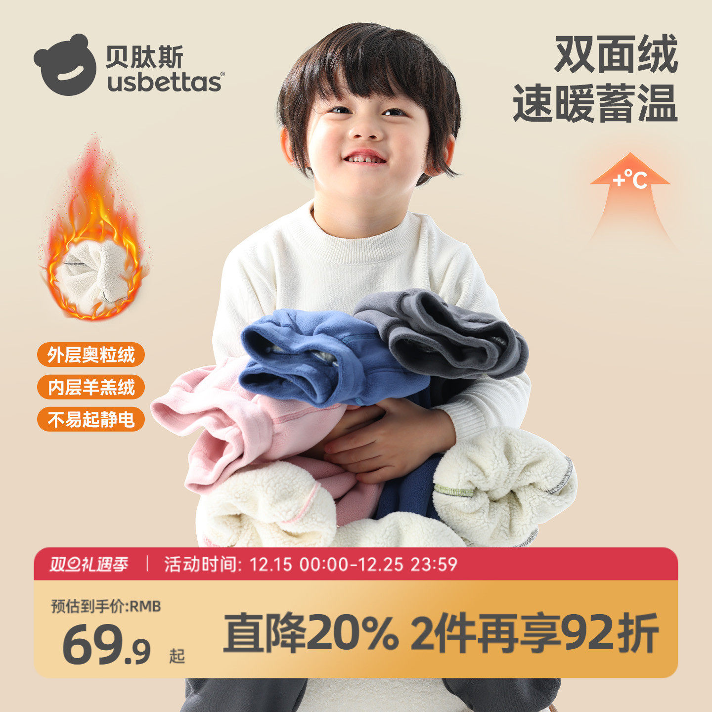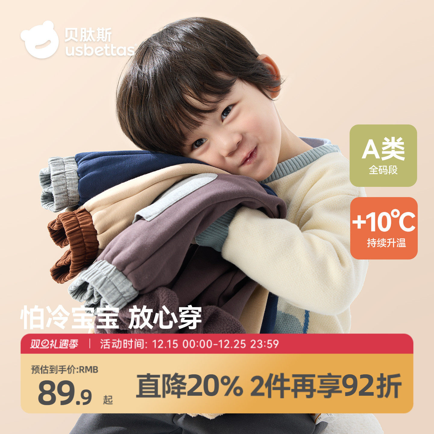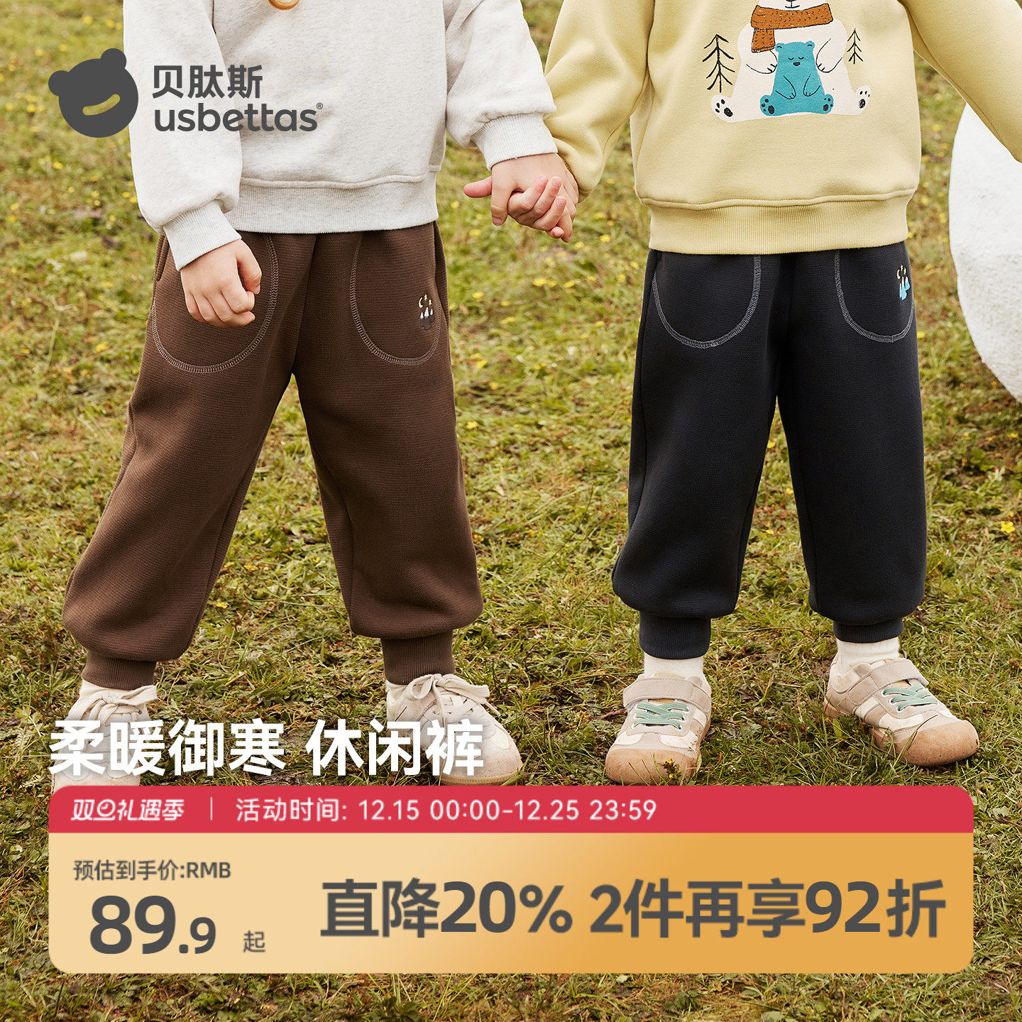 贝肽斯儿童裤子2025新款秋冬加绒卫裤男童女童装宝宝加厚保暖棉裤