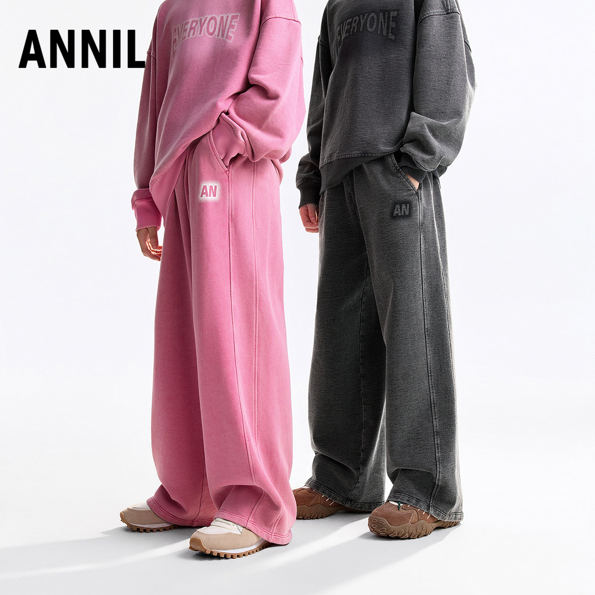 安奈儿男女童装软牛仔单裤2025秋季新款宽松阔腿长裤直筒潮酷百搭