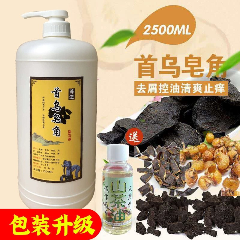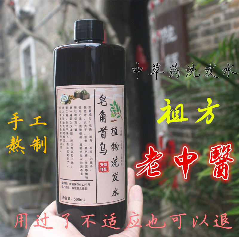 天然皂角熬制首乌手工洗发水植物无患子洗发水何首乌止痒去屑控油