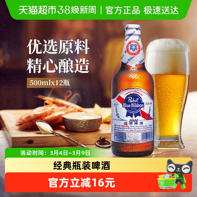 Blue Ribbon/蓝带啤酒超爽2000大瓶装500mlx12瓶啤酒整箱特价清仓
