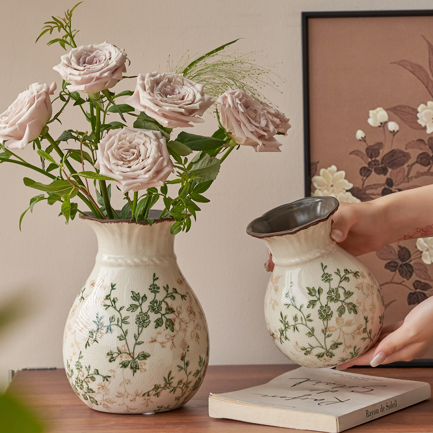 新款繁花冰裂陶瓷花瓶田园风水养玫瑰插花装饰复古创意摆件新中式
