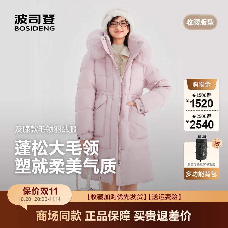 波司登2023羽绒服女时尚休闲狐狸毛领收腰过膝长款B30145266