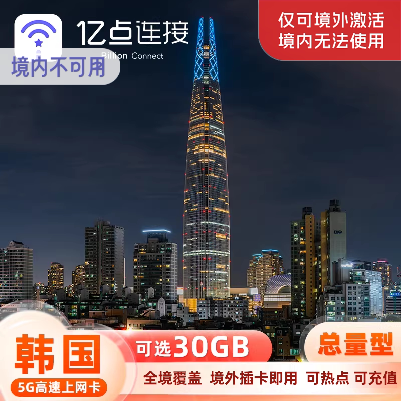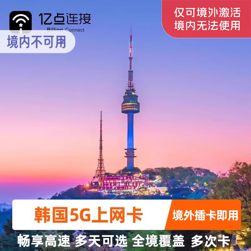 亿点韩国电话卡3/4/5/7/10天4G高速手机流量上网卡济州岛首尔旅游