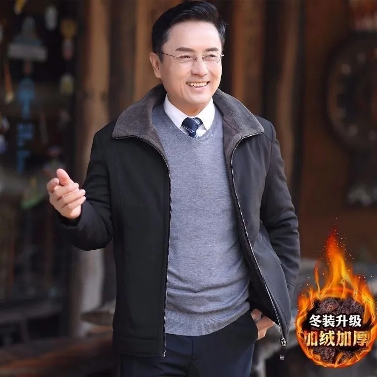 秋冬季中老年男装夹克衫加绒爸爸装衣服老人冬装父亲夹克爷爷外套