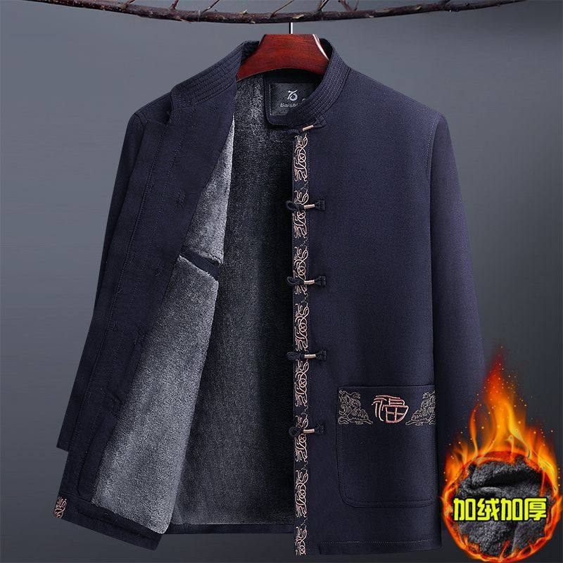 老人过寿爷爷生日冬季加绒加厚父亲婚宴礼服爸爸外套唐装男中老年