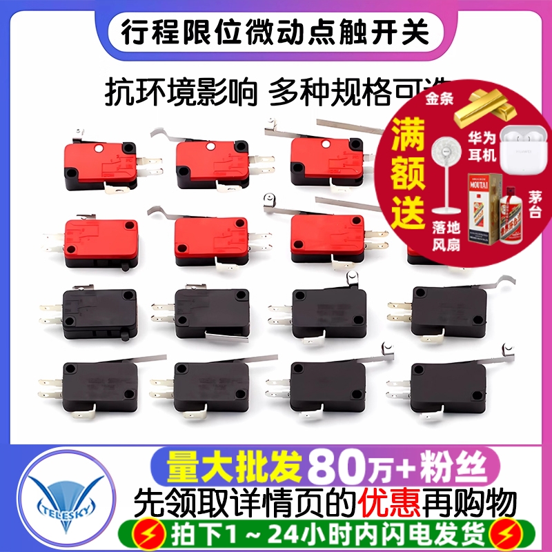 行程限位开关微动轻触式点触碰触接触点动小开关微波炉自复位回弹