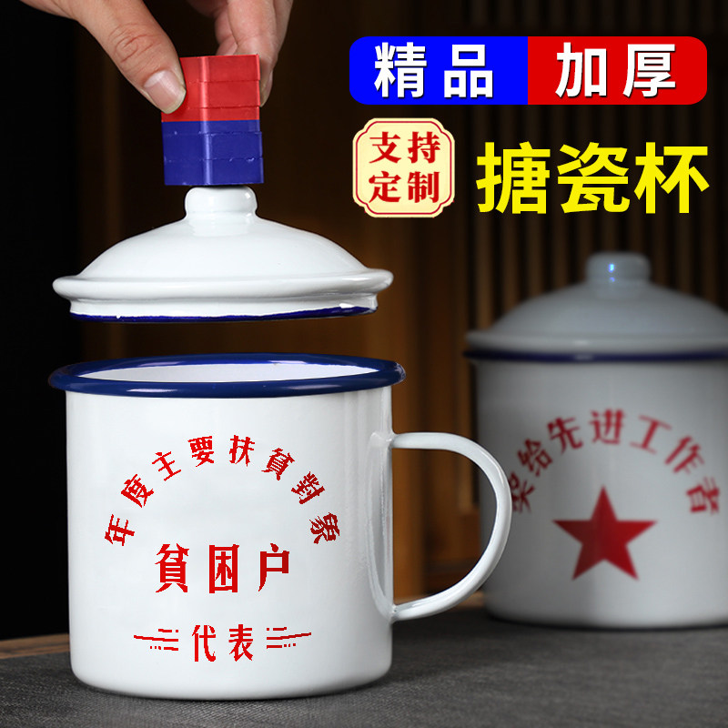 搪瓷杯怀旧经典马克杯带盖水杯男生杯子老式老干部茶杯印花款定制