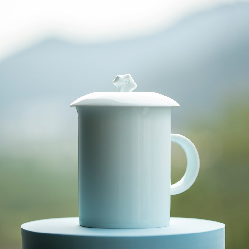陶瓷马克杯带盖羊脂玉瓷德化白瓷水杯家用杯子节庆礼品伴手礼刻字