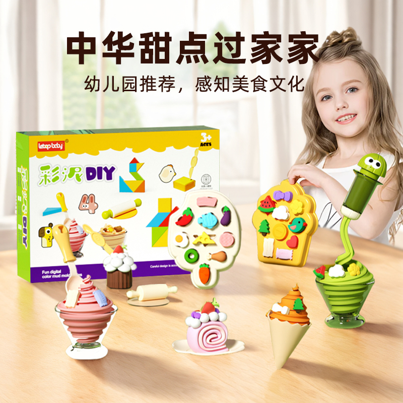 冰淇淋彩泥橡皮泥无毒男孩女孩玩具儿童幼儿园手工泥模具工具套装