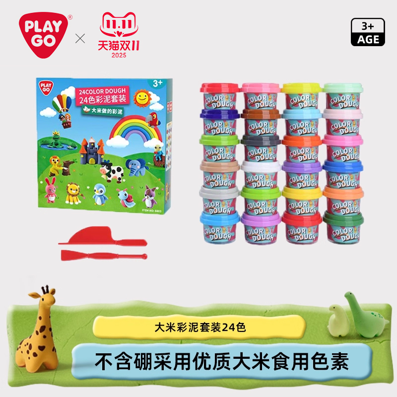 PLAYGO大米彩泥橡皮泥无毒儿童玩具无味超轻粘土男女宝宝黏土24色