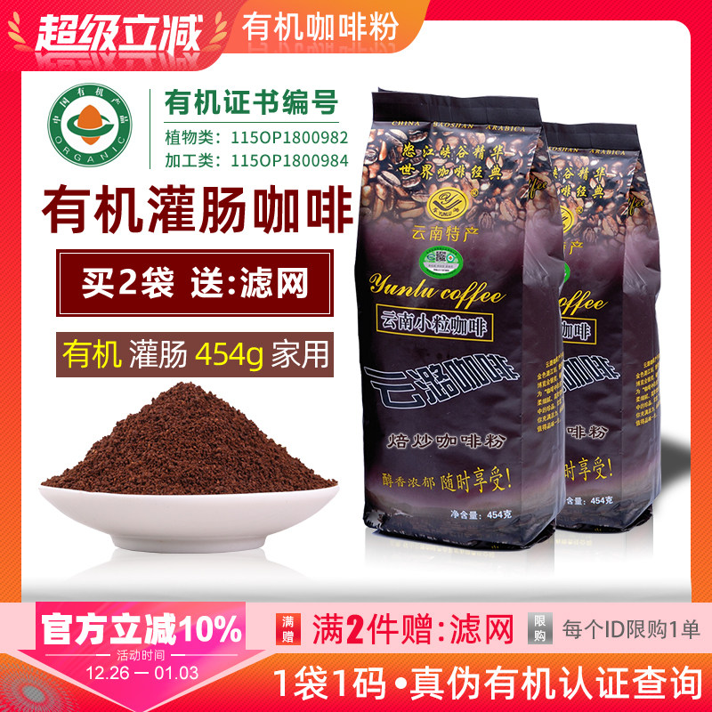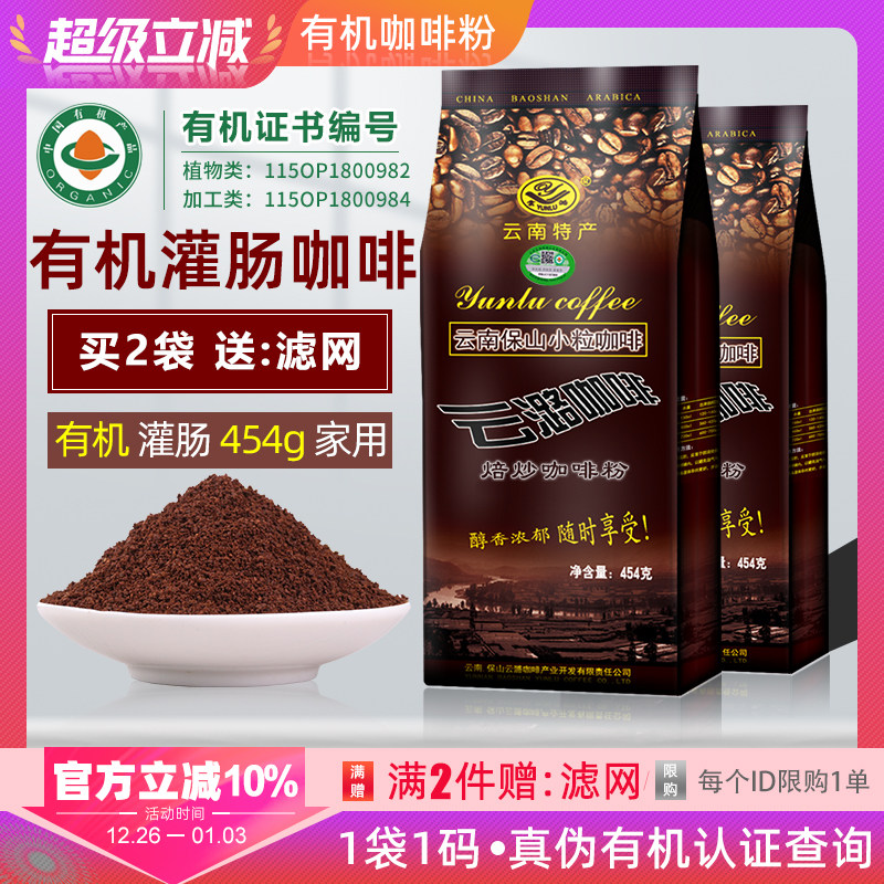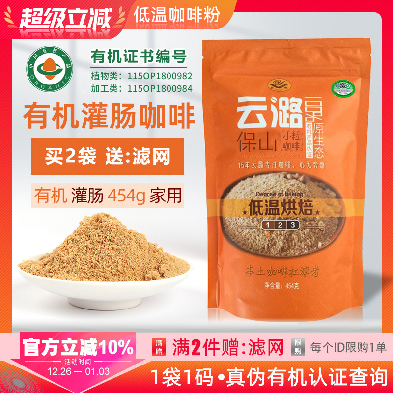 拍2发3 云潞有机低温浅烘焙灌肠咖啡粉肠道清洗肠454g包邮