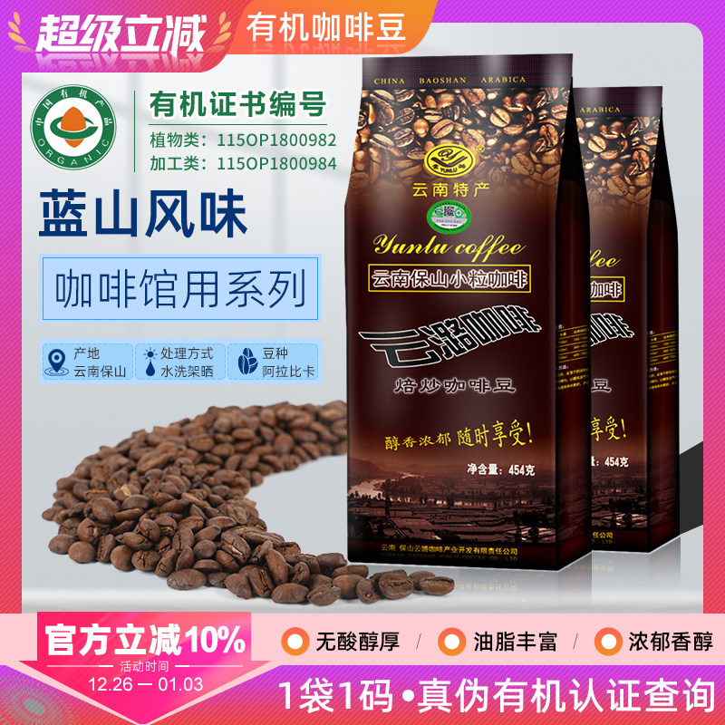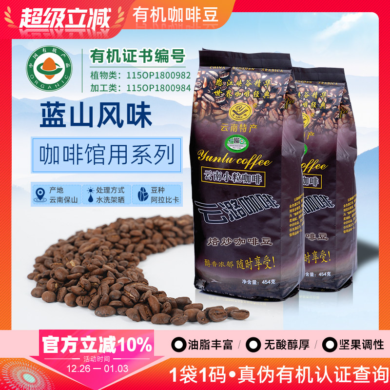 中深烘焙云南小粒咖啡豆云潞有机咖啡豆庄园种植可磨黑咖啡粉454g