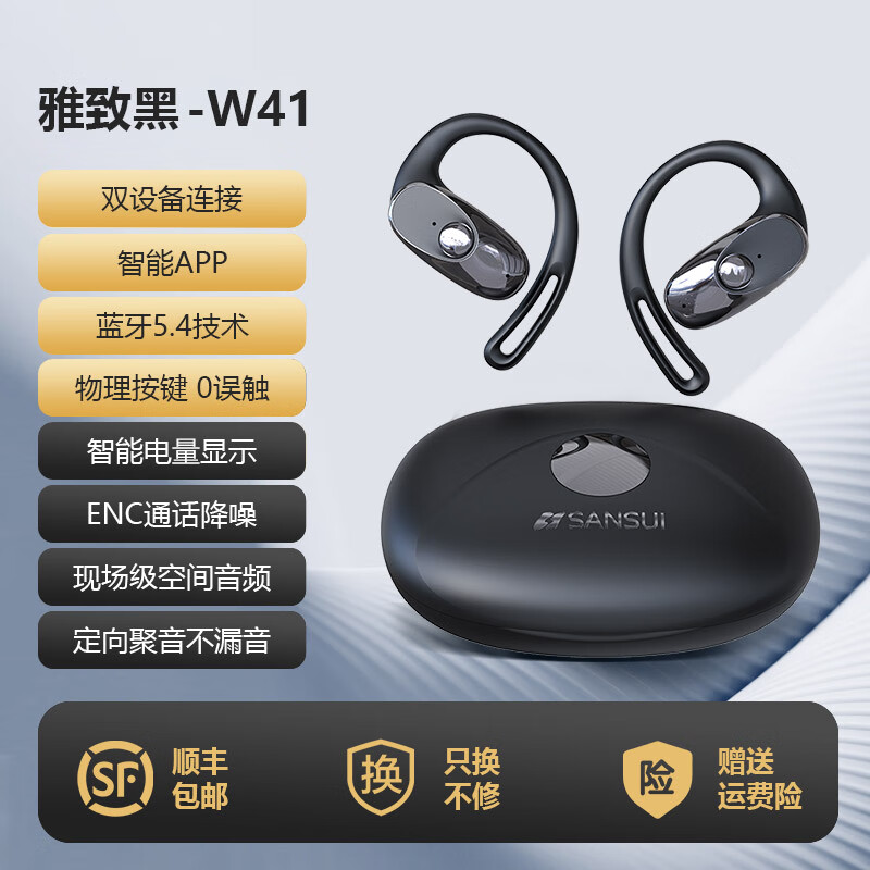 山水W41开放式蓝牙耳机不入耳挂耳式运动跑步耳机长续航通话降噪