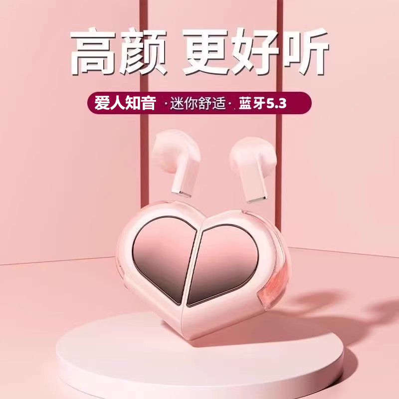 2025新款无线蓝牙耳机情侣旋转变形爱心蓝牙5.3运动跑步耳机学生
