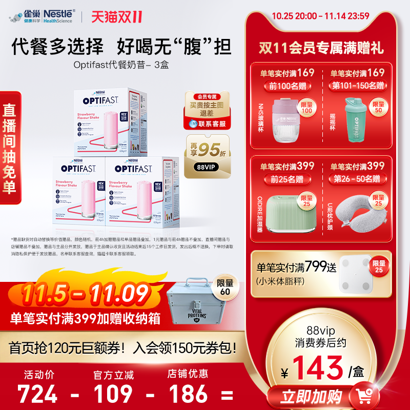 雀巢Optifast代餐奶昔饱腹冲饮食品营养早餐粉轻断食低脂餐