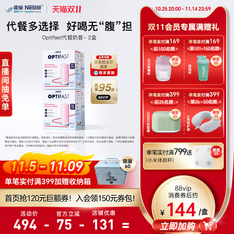 【自营】2盒装雀巢健康科学Optifast代餐奶昔低卡低脂全营养代餐