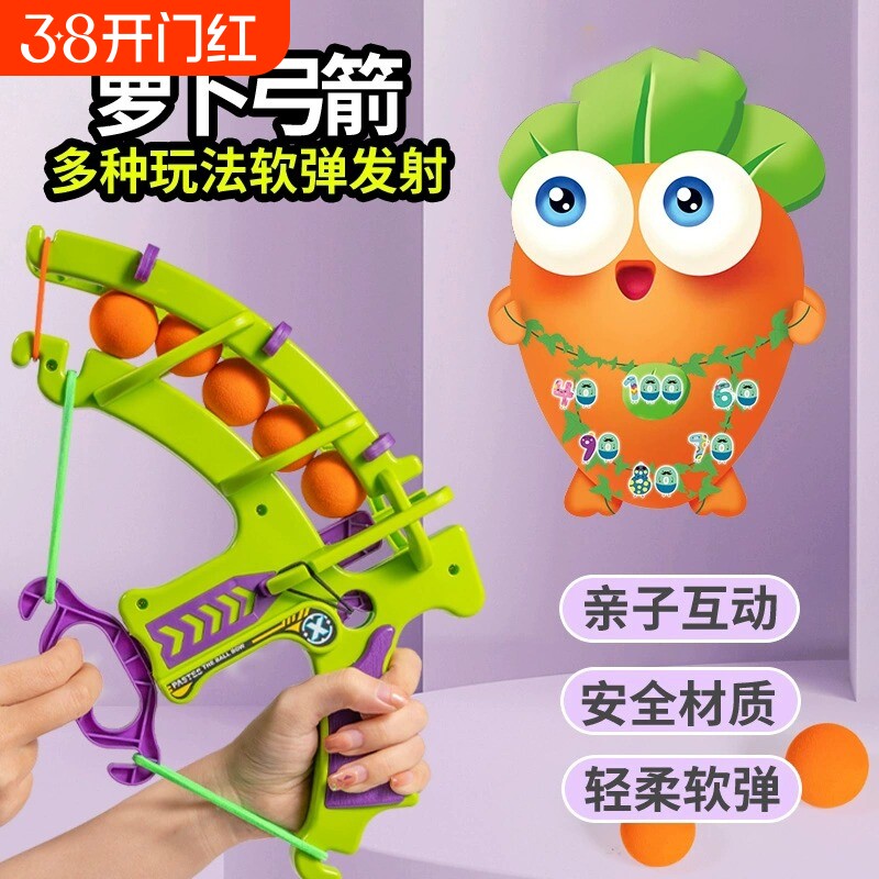 童弹射萝卜弓箭EVA球标靶弹力棉质球亲子互动投掷射击弓箭玩具