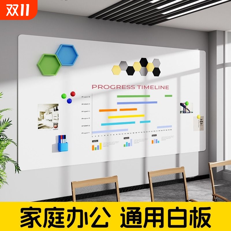 加厚双层磁性白板墙贴办公会议磁力家用黑板涂鸦墙教学投影可擦写