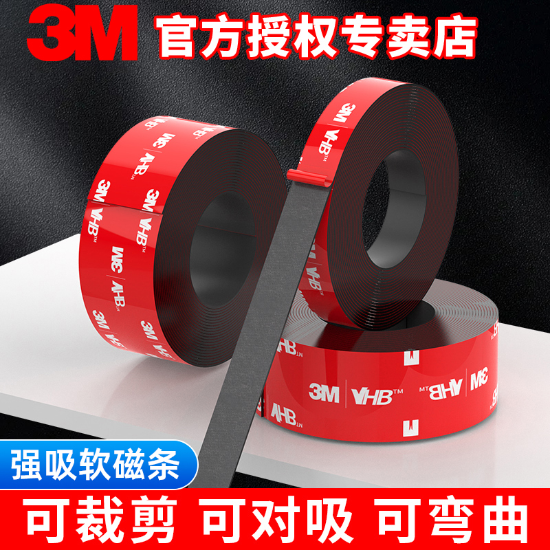 3M正品5608高粘度软磁贴强力高磁性教学课堂黑板白板冰箱门联磁铁贴片车用防水加厚自粘DIY无痕背胶磁力胶带