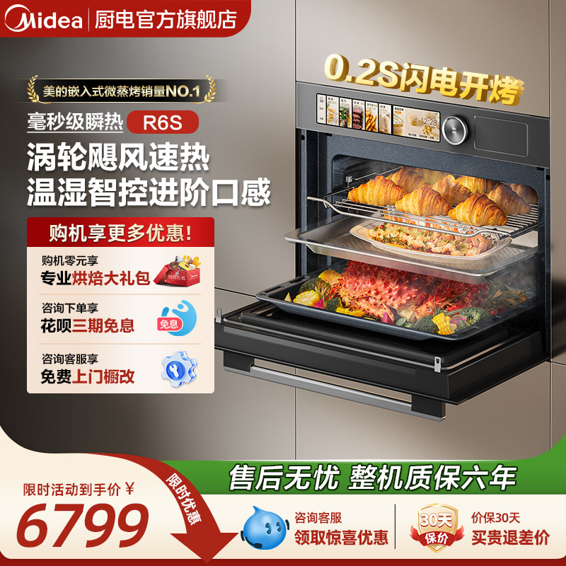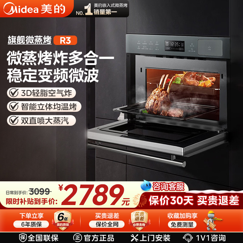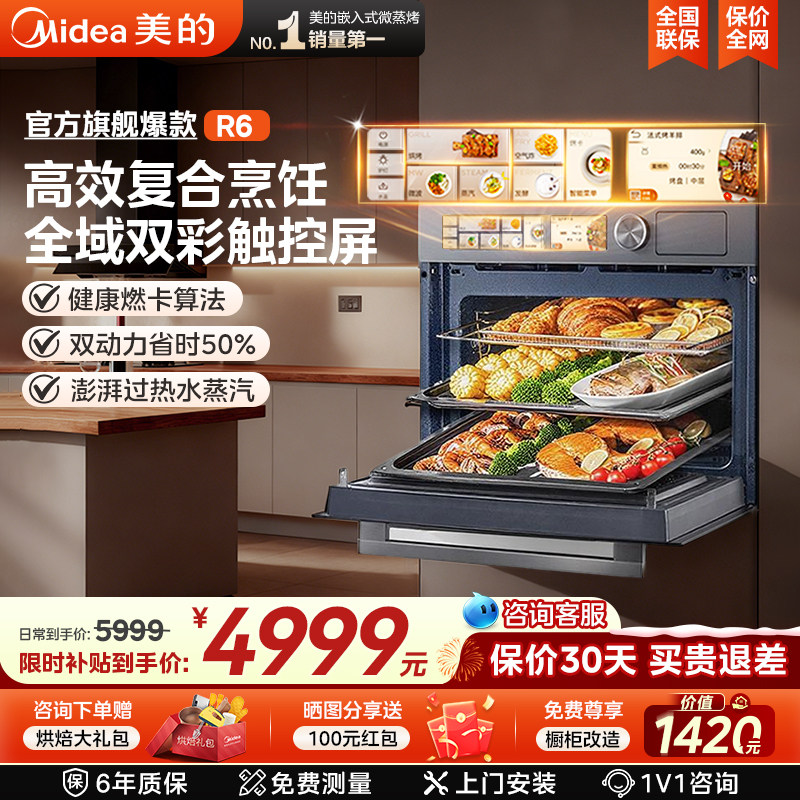 美的旗舰爆款R6微蒸烤一体机嵌入式蒸烤箱家用电蒸箱智能微波炉G6