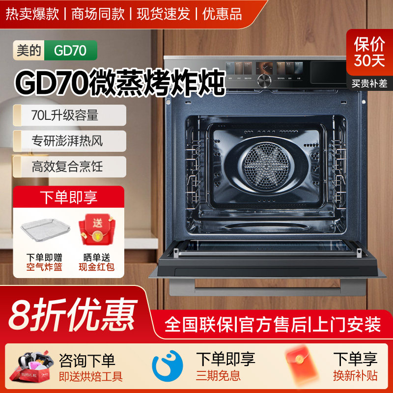美的无边GD70嵌入式微蒸烤炸炖一体机家用70升微波炉电烤箱电蒸箱