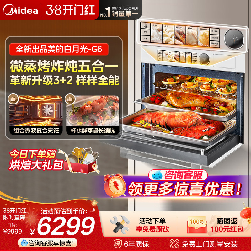 美的GR6/GR6S微蒸烤炸炖一体机嵌入式微波蒸烤箱电蒸箱优惠品