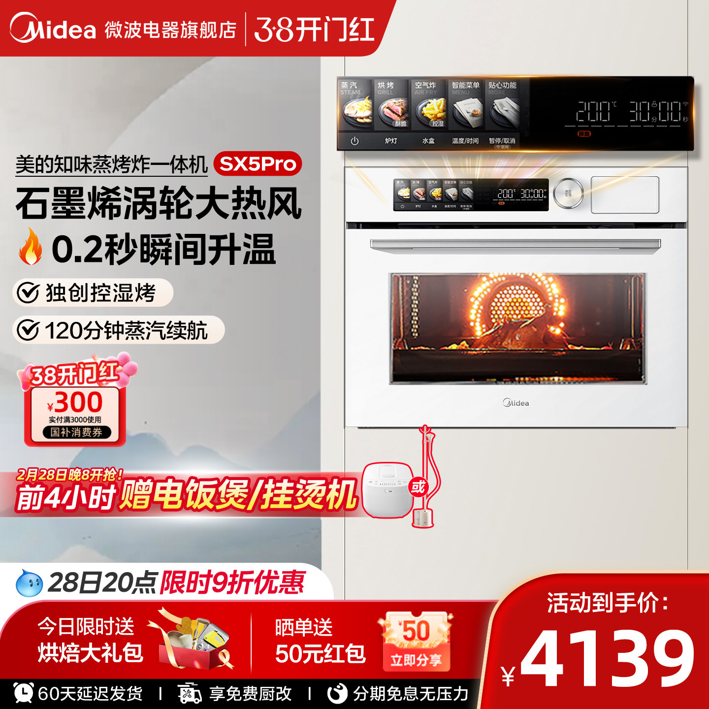 [热销爆款]美的SX5Pro蒸烤一体机嵌入式蒸烤箱家用智能电蒸箱白色