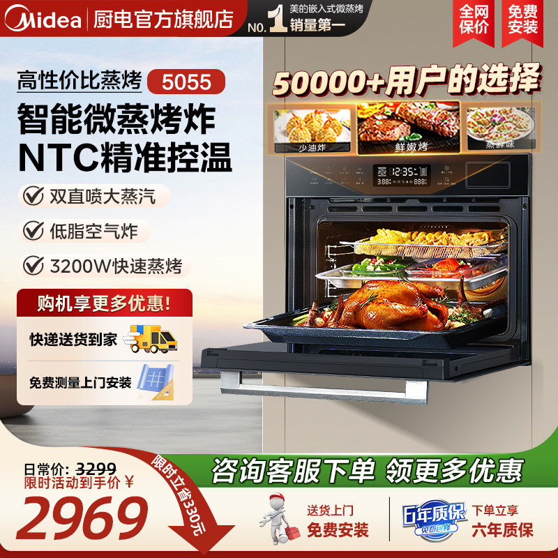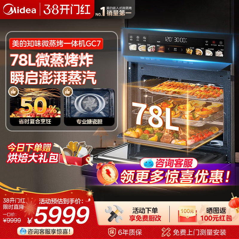 [行业爆款]美的GC5微蒸烤一体机嵌入式蒸烤箱家用智能电蒸箱微波