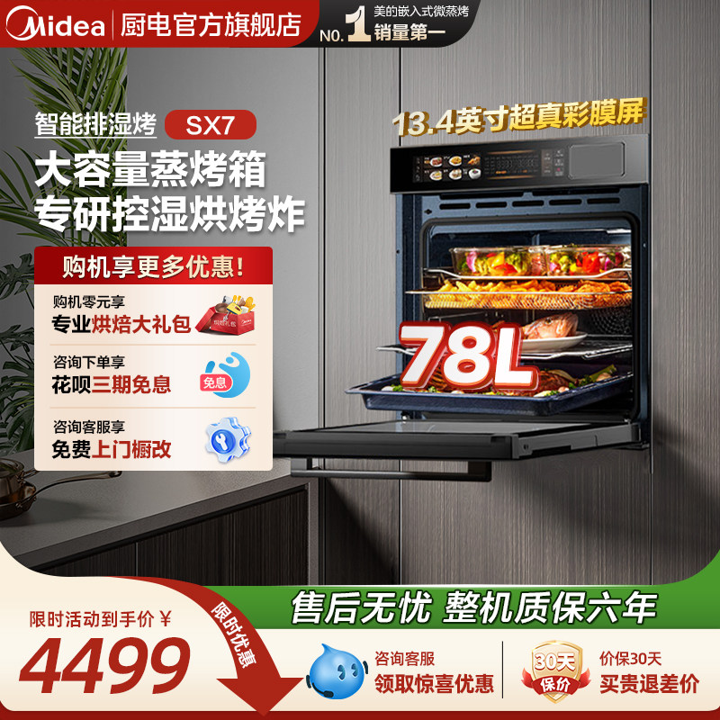 美的SX7嵌入式蒸烤箱一体机78L大容量家用烤箱智能控湿电蒸箱
