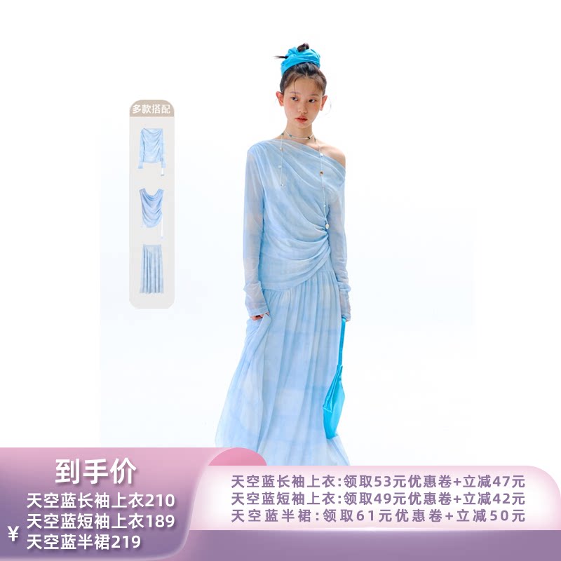 【所有姐姐的衣橱直播间】有耳uare天空蓝长短袖上衣半身裙套装