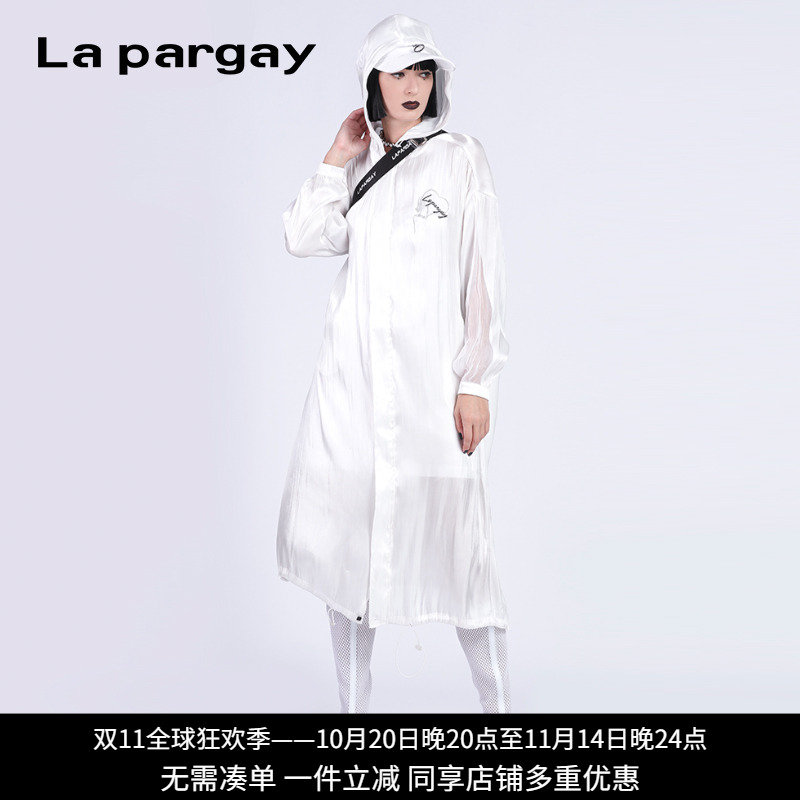 Lapargay纳帕佳2023新款雪纺衬衫女长款设计感小众连帽长外套薄款