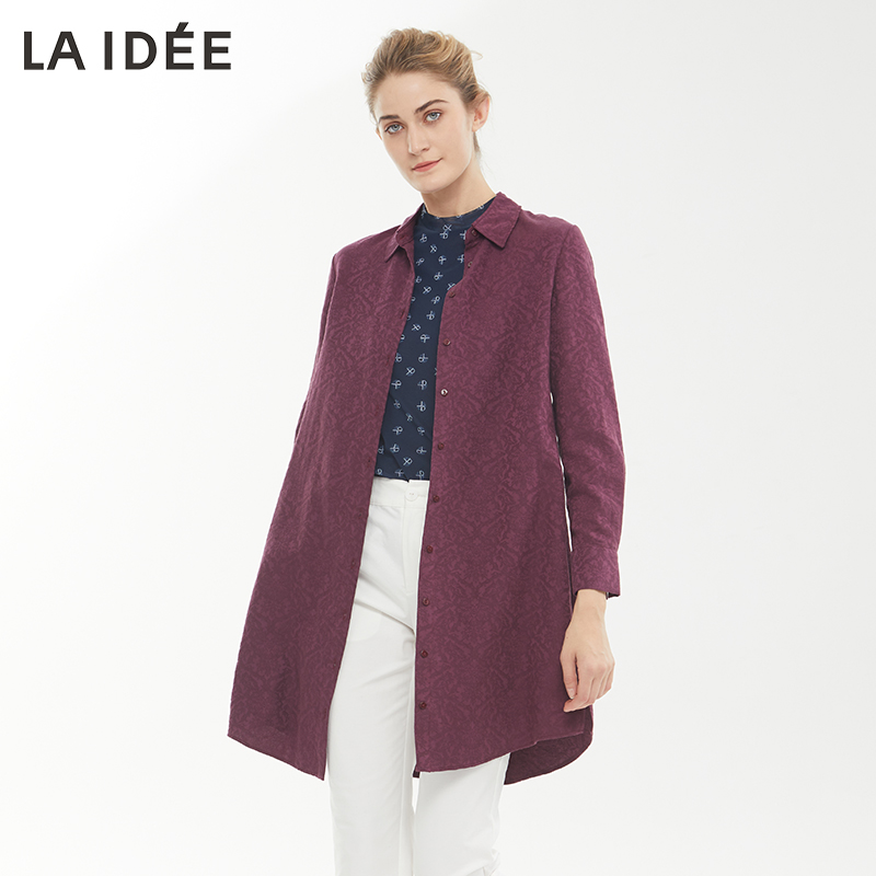 LAIDEE/罗兰伊杜外套女小众设计感长袖衬衫女长款复古提花外套女