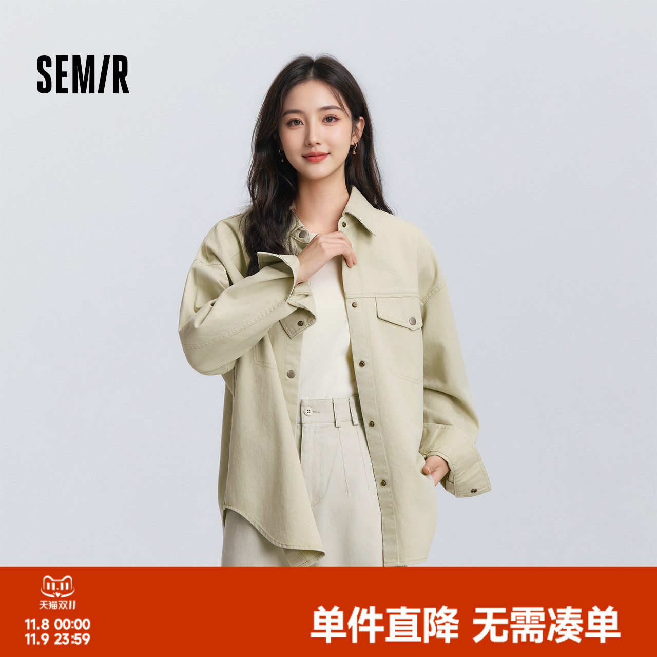 森柔牛仔|商场同款森马牛仔衬衫女中长款2025秋新款oversize衬衣