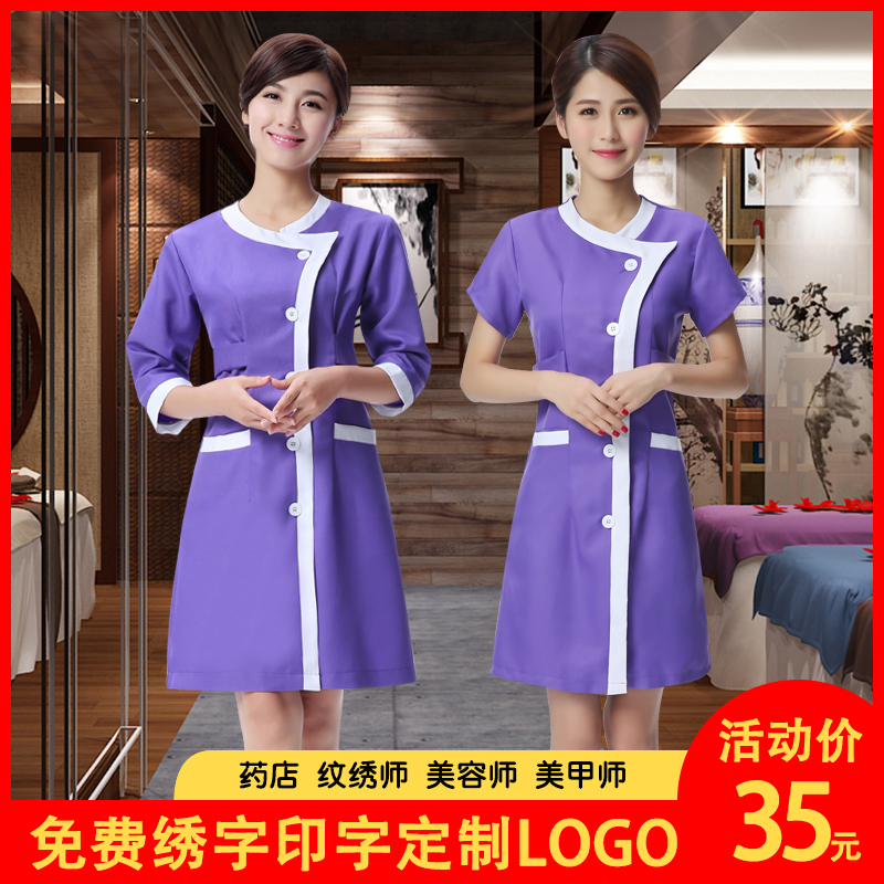 美容院工作服秋装中袖美容师连衣裙冬装美容师工作服药店护士服女