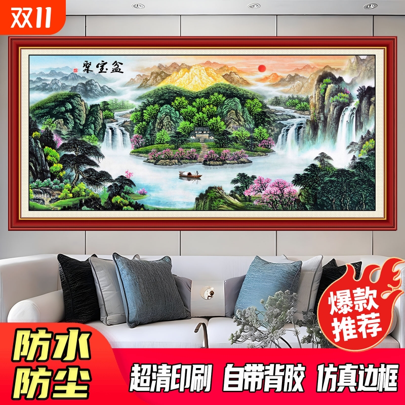 背靠金山银山床头画客厅沙发背景墙装饰画金山财源滚滚好寓意贴画