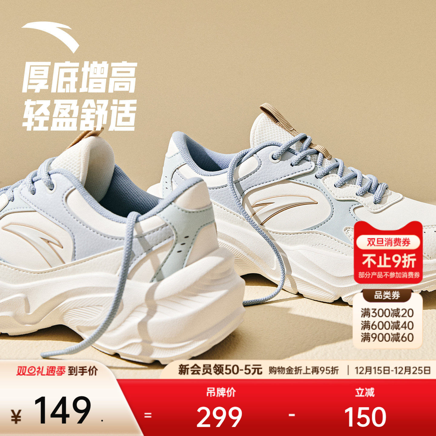 安踏革网拼接复古休闲鞋女冬季舒适潮流运动鞋子百搭白色通勤女鞋