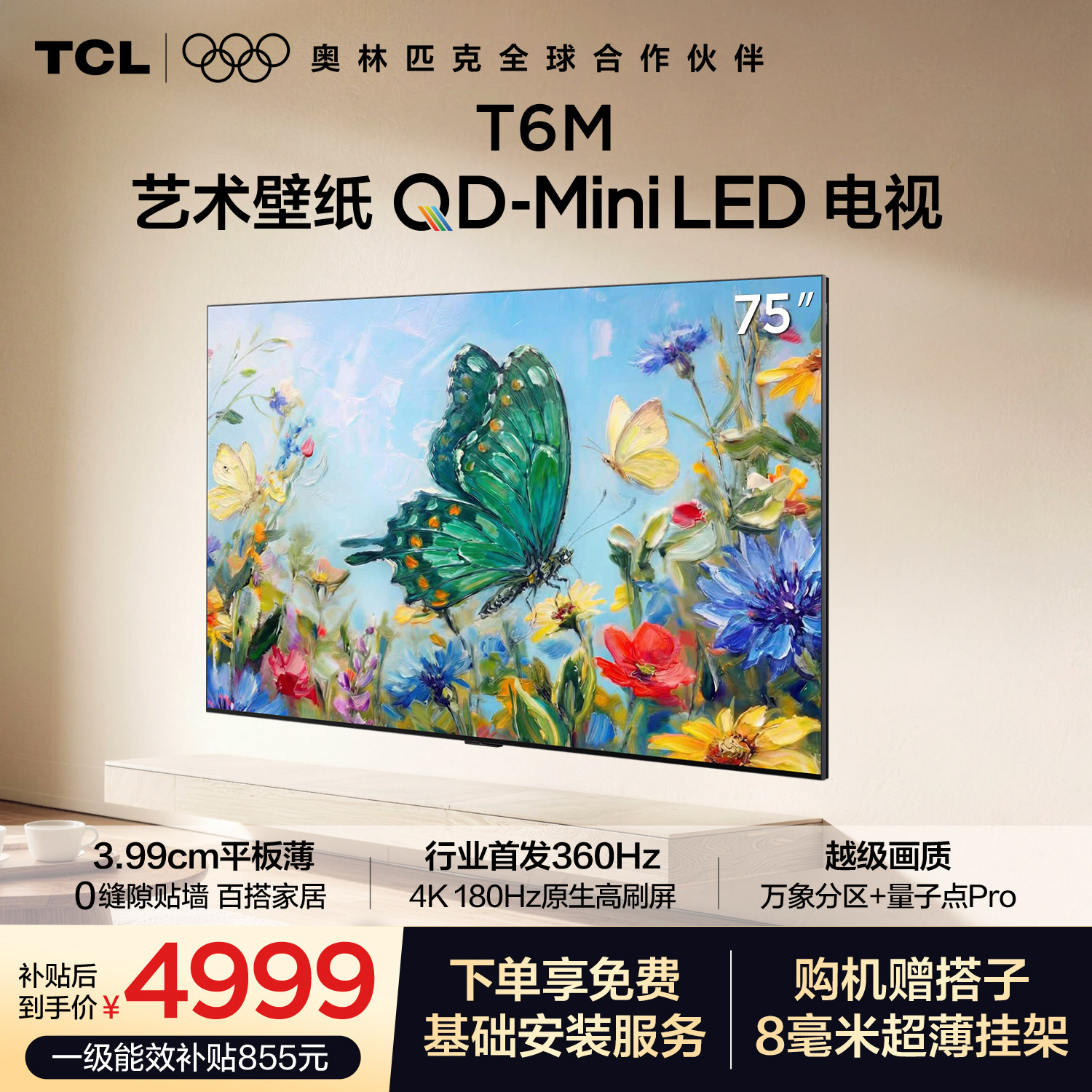 TCL艺术壁纸QD-Mini LED电视 75T6M 75英寸 3.99cm平板薄