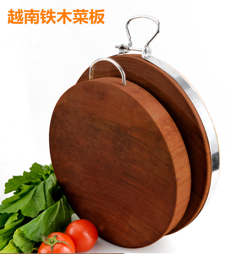 正宗越南铁木抗菌砧板菜板 实木蚬木切菜板整木圆形带箍实木砧板