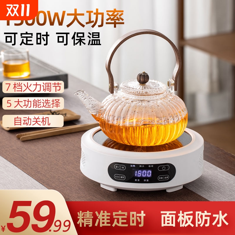 电陶炉煮茶器煮茶炉玻璃蒸茶烧水壶套装单炉定时迷你薄款电炉煮茶