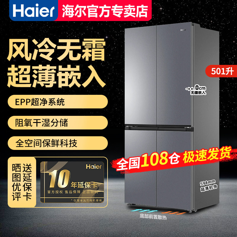 海尔476L十字对开门电冰箱家用超薄嵌入式双开门一级能效风冷无霜