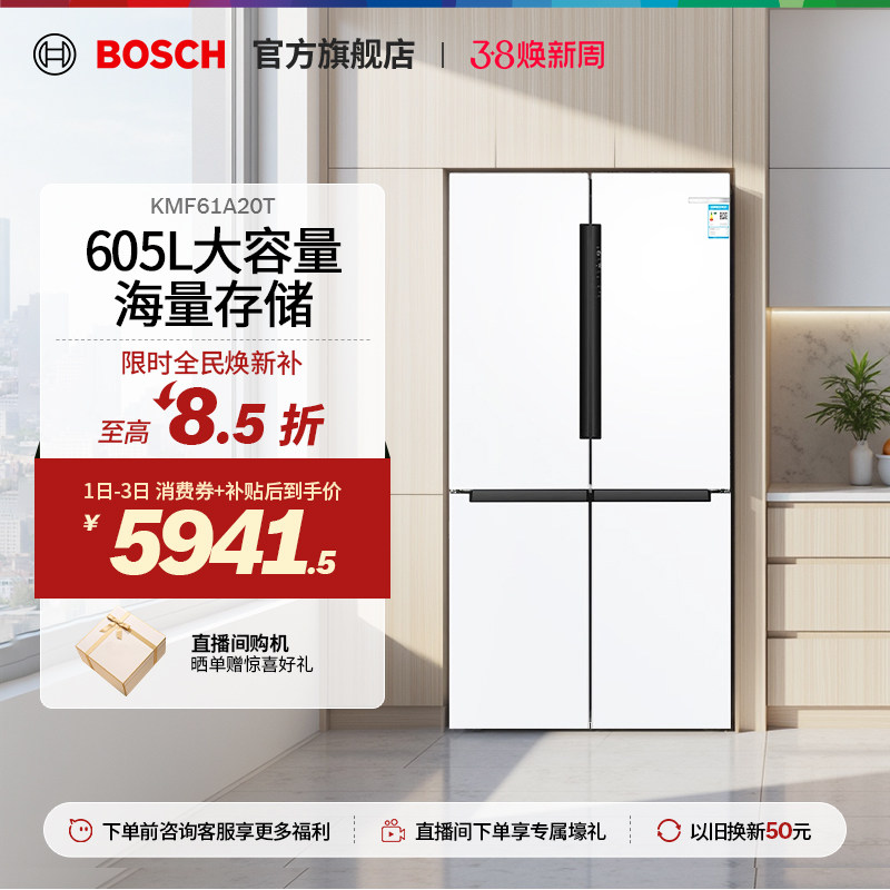 【焕新补贴】博世605L冰箱家用大容量大白鲸十字对开门冰箱61A20