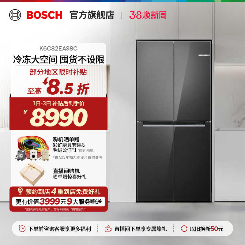 【门店体验】博世550L嵌入式一级铂金净风鲜润十字对开门冰箱98C