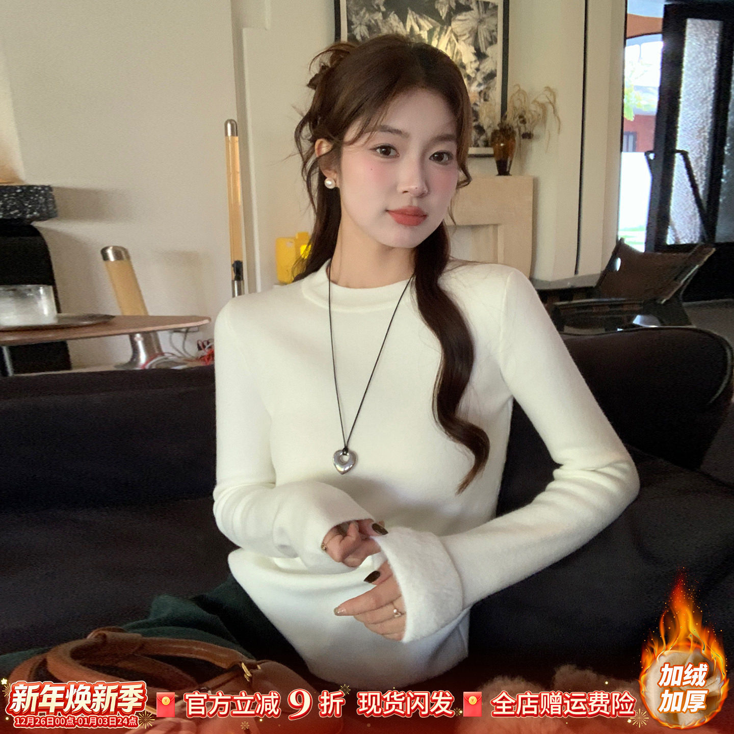 龙妹家白色加绒加厚毛衣打底衫女装内搭2025新款爆款秋冬针织上衣