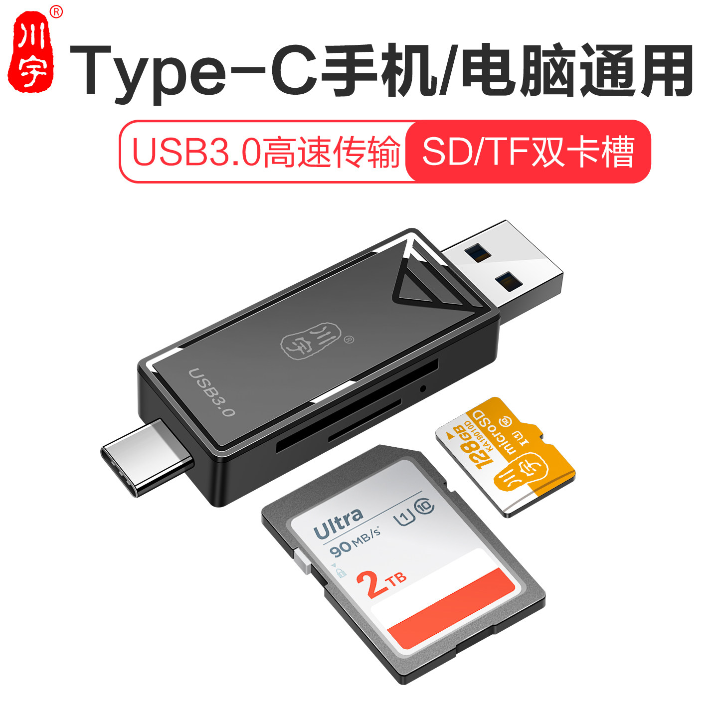 川宇相机读卡器sd/tf卡多功能usb高速转换器typec适用华为苹果17佳能单反大疆连接手机电脑两用多合一读取器