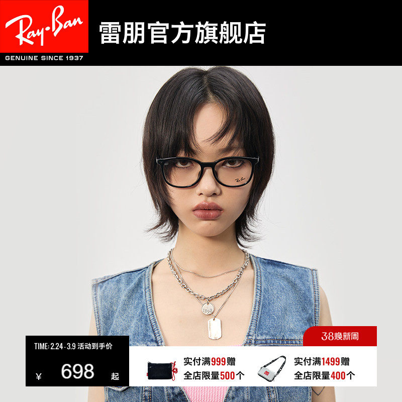 RayBan雷朋近视眼镜男黑框眼镜框女方框眼镜架潮可蔡司镜片RX5296