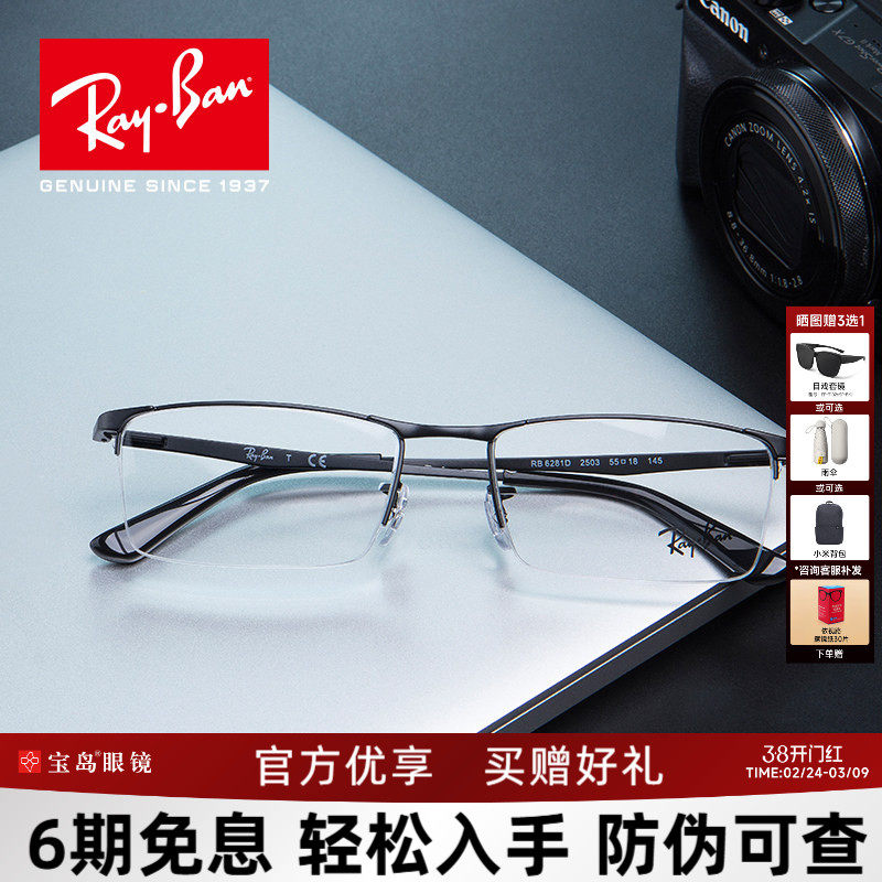 RayBan/雷朋近视眼镜框商务气质半框男女镜架可配近视度数0RX6281