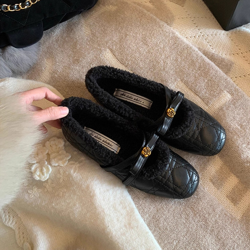 法式复古巨好看的芭蕾玛丽珍鞋女外穿2025秋冬新款平底加绒毛毛鞋