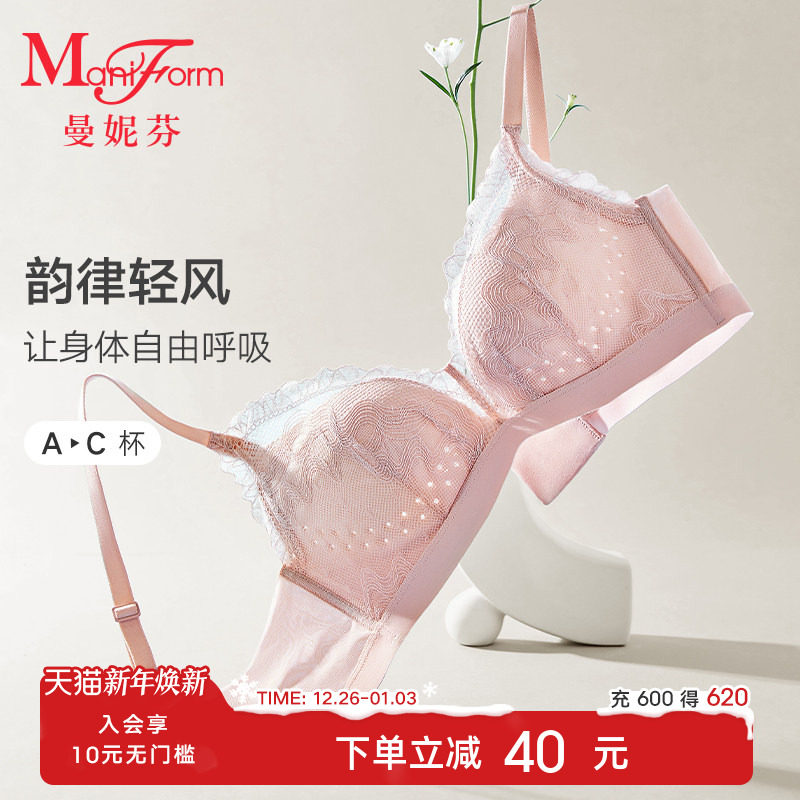 [chu日ben] [光滑无痕]轻乳棉+蕾丝上薄下厚显胸型舒适内衣文胸女