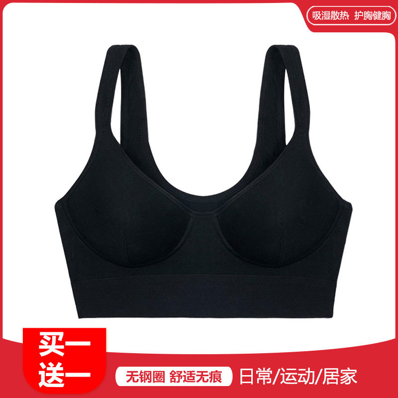 外贸运动文胸背心式宽边松紧舒适内衣纯棉无钢圈海绵模型杯BC胸罩